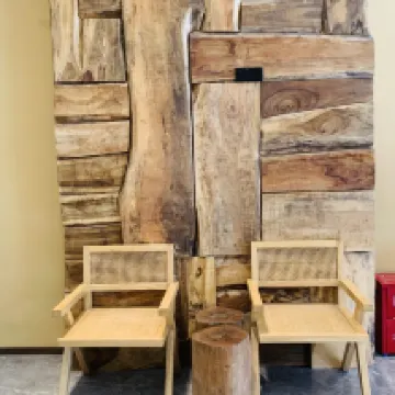 Don't know where the wood comes from. But it's a nice hotel. Clean, friendly, great.