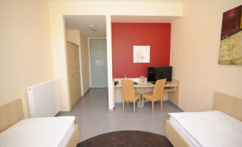 Das Hotel ist direkt am Tischtennis Geschehen. Da wir hier zu den Andro Kids Open übernachtet haben, war das extrem schön, sein eigenes Bad zu haben und sich zwischendurch mal hinlegen zu können. Es hat uns an nichts gefehlt.