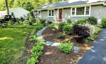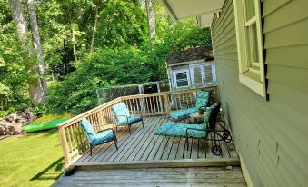 Shoreline home a mile from the beach fun for all seasons.