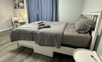 This spacious upstairs unit (800 sq. ft.) offers a peaceful and private stay with 2 bedrooms (each with a queen-size bed), 1 modern bathroom, a fully equipped kitchen, and a warm living room.