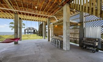 On the ground floor is 3800 sq. ft. of paved covered area for bar-b-q, parking cars or hanging out.