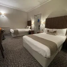 It's not bad. The room is in a formal English style. The facilities are very good and the towels are new. The triple bed is the last bed which is narrow, only 80 cm, and it is easy to roll down when sleeping at night.