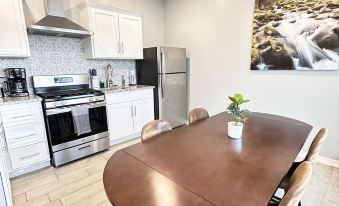 Experience compact luxury in our remodeled tiny home. This 1-bed, 1-bath space maximizes comfort with a plush queen bed for two. Relax in the living area, furnished with a cozy sofa and TV. Whip up meals in a sleek kitchen, complete with a peninsula and essential appliances. For remote work, there's an adjustable robotic desk paired with an ergonomic chair. Merging function and style, this home defines modern, efficient living. Dive into a unique blend of coziness and innovation!