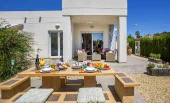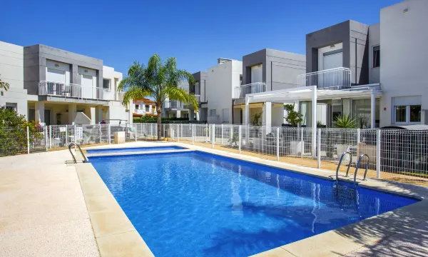 Modern, beautiful, very comfortable semi-detached house "Jill", built in 2020. In the resort Els Poblets, in a quiet, sunny position, 1 km from the sea, 1 km from the beach. For shared use: swimming pool angular (10 x 5 m, depth 80 - 210 cm, seasonal availability: 01.Jan. - 31.Dec.). Children's pool, outdoor shower. Private: patio, pergola, garden furniture, parking on the premises. Shop 350 m, supermarket 1 km, restaurant 350 m, bar 200 m, bakery, café 350 m, bus stop 2 km, railway station 1.1 km, ferry 1.1 km, sandy beach "Playa Les Deveses" 1.5 km pebble beach "La Almadrava" 1 km. Sports harbour 10 km. The owner does not accept any youth groups. "Casa Jill", 4-room semi-detached house 85 m2. Spacious and bright, beautiful and cosy furnishings: living/dining room with satellite TV, digital TV, air conditioning and forced-air heating. Exit to the patio. 1 room with 1 french bed (150 cm, length 190 cm), air conditioning and forced-air heating. Exit to the patio. 1 room with 1 bed (90 cm, length 190 cm), air conditioning and forced-air heating. 1 room with 1 bed (90 cm, length 190 cm), air conditioning and forced-air heating. Open kitchen (oven, dishwasher, 3 ceramic glass hob hotplates, toaster, kettle, microwave, freezer, electric coffee machine). 2 showers/WC. Large terrace. Terrace furniture. Facilities: washing machine, iron, children's high chair, baby cot, hair dryer. Internet (WiFi, free). Parking. VT-475059-A