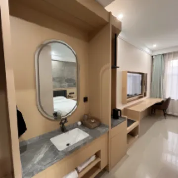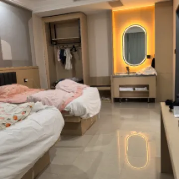 Came to Erenhot with my family for the summer and this hotel was genuinely much, much better than expected. The price was also very affordable, and the service attitude was excellent. The rooms have central air conditioning and smart voice control. It's clean and hygienic, with a separate wet and dry area and a smart toilet. There's also a rich breakfast in the morning. Plus, the main thing is the price is very reasonable. Parking downstairs is super convenient, you can park a lot of cars right outside the entrance, and the hotel has an elevator. And the front desk lady was very kind and welcoming. The suite was very spacious, and even had a living room and exactly the same layout (assuming '一模一样' refers to another room or the suite's consistent design).
