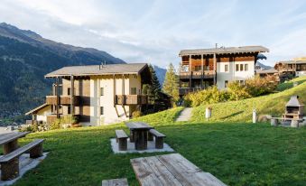 Cosy, rustic holiday village "Aragon", 1'200 m a.s.l.. 21 houses in the resort. On the outskirts, 500 m from the centre of Ernen, in a quiet, sunny position on a slope, 4 km from the skiing area. For shared use: table tennis, barbecue, fireplace, children's playground. In the house: storage room for bicycles, storage room for skis, central heating system, washing machine, tumble dryer (for shared use, extra). Motor access to the grounds (mountain road). In Winter: please take snow chains, 4x4 car recommended in winter. Communal covered parking. Shop 500 m, bus stop 100 m. Golf course (18 hole) 25 km, tennis 4 km, indoor tennis centre 4 km, sports centre 4 km, gondola lift 4 km, skisport facilities 4 km, ski rental 4 km, ski bus stop 100 m, ski school 4 km, cross country ski track 4 km. Well-known ski regions can easily be reached: Aletsch Arena 4 km, Bellwald 12 km. Hiking paths: Landschaftspark Binntal 10 km. The new hanging bridge connects the two hiking estates of Ernen and Bellwald and provides access to the national cycle route nr. 1 (road of the Rhone glacier lake to Lake Geneva). Between Ernen and Mühlebach, the bridge provides direct access to the Matterhorn Gotthard train. "Aragon M86", 1-room apartment 38 m2 on 1st floor. Practical and cosy furnishings: living/sleeping room with 1 sofabed, 2 fold-away beds and cable TV (flat screen), radio. Exit to the balcony. Open kitchen (oven, 4 ceramic glass hob hotplates, electric coffee machine). Bath/WC. Balcony. Balcony furniture. Very beautiful view of the mountains, the valley and the countryside. Facilities: baby cot (extra). Internet (WiFi, free). Garage space n 127. Please note: non-smokers only.