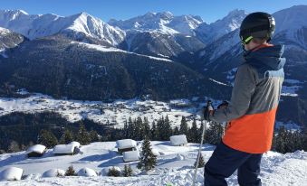 Cosy, rustic holiday village "Aragon", 1'200 m a.s.l.. 21 houses in the resort. On the outskirts, 500 m from the centre of Ernen, in a quiet, sunny position on a slope, 4 km from the skiing area. For shared use: table tennis, barbecue, fireplace, children's playground. In the house: storage room for bicycles, storage room for skis, central heating system, washing machine, tumble dryer (for shared use, extra). Motor access to the grounds (mountain road). In Winter: please take snow chains, 4x4 car recommended in winter. Communal covered parking. Shop 500 m, bus stop 100 m. Golf course (18 hole) 25 km, tennis 4 km, indoor tennis centre 4 km, sports centre 4 km, gondola lift 4 km, skisport facilities 4 km, ski rental 4 km, ski bus stop 100 m, ski school 4 km, cross country ski track 4 km. Well-known ski regions can easily be reached: Aletsch Arena 4 km, Bellwald 12 km. Hiking paths: Landschaftspark Binntal 10 km. The new hanging bridge connects the two hiking estates of Ernen and Bellwald and provides access to the national cycle route nr. 1 (road of the Rhone glacier lake to Lake Geneva). Between Ernen and Mühlebach, the bridge provides direct access to the Matterhorn Gotthard train. "Aragon F130", 4-room apartment 100 m2 on 2 levels on 1st floor. Practical and cosy furnishings: living/dining room with open-hearth fireplace (only for decoration), cable TV (flat screen), hi-fi system. Exit to the balcony. 1 room with 2 beds (80 cm, length 200 cm). Open kitchen (4 hot plates, oven, dishwasher). Shower/WC. Upper floor: 1 double bedroom. 1 room with 2 beds (80 cm, length 200 cm). Bath/WC. 2 balconies. Balcony furniture. Beautiful view of the mountains, the valley and the countryside. Facilities: iron, baby cot (extra). Internet (WiFi, free). Garage space n 47. Please note: non-smokers only. Maximum 1 pet/ dog allowed. 006.000.128.78