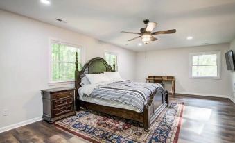 This stunning property boasts a spacious 4 bedroom, 3 bath home situated on a sprawling 90-acre lot. Nestled in a serene and peaceful location by the tranquil creek pond, this home offers the perfect retreat from the hustle and bustle of everyday life. Whether you're an avid fisherman, enjoy glamping, or love to hunt, this property has something for everyone. This property is truly a dream come true.About pets:Pets allowed: dogs and cats less than 50 lbs per pet (limit one pet total).About checkOut:Check out before 11:00 AM.About children:Children allowed: ages 0-17.About checkIn:Check in after 4:00 PM.About smoking:Smoking is not permitted.About minBookingAge:Minimum age to rent: 18.About events:No events allowed.