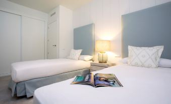 Upon entering the apartment, you will find a spacious and bright living room with an integrated kitchen equipped with all the necessary utensils, as well as a sitting area furnished with comfortable sofas, a Smart TV, and a side table, perfect for your leisure moments. The private terrace offers pleasant views of Juan Carlos I Avenue. From the living room, you access the two bedrooms. To the right, you will find the first bedroom with two 90 cm x 2 m beds, ample wardrobes, and a main bathroom with a shower in the corridor. The second bedroom, with an en-suite bathroom with a shower, offers a 150 cm x 2 m bed and built-in wardrobes.