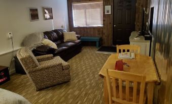 Roomy bunk-house, comfortably sleeps 4 with 1 queen bed and 1 full pull-out bed, modest bathroom with shower, flat screen smart-TV and large private covered patio.