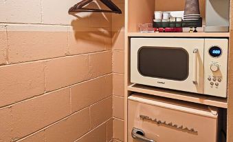 The property includes 8 hotel units, each with its own bathroom, mini fridge, microwave, and coffee maker. Each room comfortably sleeps two. All guests can access the shared outdoor seating space, parking lot, and can easily access the restaurant on site. Perfect for a weekend stay or business trip!About pets:No pets allowed.About checkOut:Check out before 11:00 AM.About children:Children allowed: ages 0-17.Cribs are not provided.About checkIn:Check in after 3:00 PM.About smoking:Smoking is not permitted.About minBookingAge:Minimum age to rent: 18.About events:No events allowed.