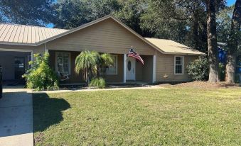 The house is on a quite cul-de-sac 2 miles to beach, 2 separate living spaces, remodeled kitchen, new flooring thru out, Kitchen has everything you will need- air-fryer/blender/Coffee maker, wine glasses, grill, 2 car garage. large outdoor fenced in. Work desk area. Walking distant to the YMCA, also a community recreation heated pool and kiddie pool.About pets:Pets allowed: dogs less than 50 lbs per pet (limit one pet total).About checkOut:Check out before 11:00 AM.About children:Children allowed: ages 0-17.About customRules:No Parking on Grass - only in driveway or garage..About checkIn:Check in after 3:00 PM.About smoking:Smoking is not permitted.About minBookingAge:Minimum age to rent: 25.About events:No events allowed.