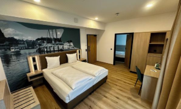 Die Begrüßung war freundlich. Wir sind am Nachmittag angekommen und haben erst vor Ort das Zimmer gebucht. Der Preis ist immer mit Frühstück( ohne gibt es nicht). Das Hotel wurde erst vor ein paar Tagen wieder eröffnet, so das die Außenanlage noch nicht fertig ist. Parkplätze gab es, ob gegen Aufpreis ist mir nicht bekannt. Die Handwerker waren im Haus etwas schlusig. Schiefe Steckdosen, Rohre, Kabel über Putz, unnütze Bohrungen/Löcher im Bad am Waschtisch , die nicht geschlossen wurden. Das Zimmer ist sehr groß, leider viel Platz verschenkt. Vielleicht würde ein weiteres Möbelstück dem Eindruck ein wenig entgegen wirken. Abends waren wir noch an der Bar, wie das gesamte ander Personal wurden wir sehr freundlich behandelt. Ein netter Mensch. Mein Campari Spritz war ein Campari Sprite😂. Ein wenig Probleme beim Bierzapfen und Weißbier einschränken hatte er auch hat es aber mit seiner Nettigkeit wettgemacht. Frühstück war ausreichend. Der Lachs machte es gleich hochwertiger. Kaffee war gut, Tee einfach aber 8 Sorten. Frische Sachen gab es zur Genüge( Tomaten, Gurken, Paprika, Gewürzgurke), Eierspeisen,Würstchen, mehrere Saftsorten, Obst. Fazit Netter Aufenthalt, Sauberkeit super,, Frühstück gut, empfehlenswert