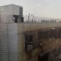 Environment: There is an abandoned old building outside the window, which looks like a ghost building
