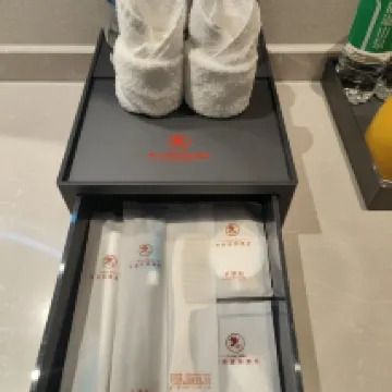 The lobby is elegant, and the receptionist greeted me warmly. Check-in was quick, and they even upgraded me to a deluxe room, which was very thoughtful. A minor issue with the room was immediately addressed, and I highly recommend the front desk lady, Xiaofang, for her speedy service. The room was clean and tidy, and the bedding was comfortable, though I was disappointed not to get the personalized pillows. The toiletries were pleasant and I loved their smell. The towels were fluffy, and overall, the experience was quite positive.