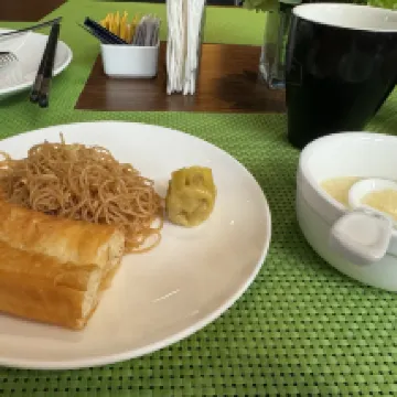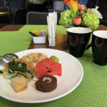 I stayed for one night. The room is large but a bit lacking. There's no place to open my suitcase; I had to open it on the floor. Breakfast is basic but adequate, with both savory and sweet options.