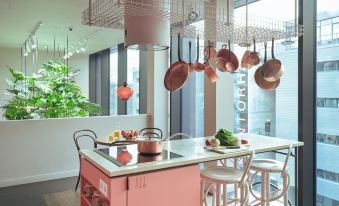 Continue your culinary experience by savoring exquisite dishes in our vegan restaurant; highlighting the flavors of local products For a sweet break; go to the bakery located in the lobby And don t miss our two shared kitchens; our herbarium and our fully equipped gym; designed to meet all your fitness needs