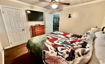 Relax at this peaceful place to stay on Cedar Creek Lake. This hideaway has 2 bedrooms (both with King Beds), 1 bath with a futon and 2 rollaway beds. The kitchen is equipped with an island with barstools. There is covered parking for 3 vehicles. There are steps on the end of the pier and 13' deep water. The boat launch is just up the road. There is also parking for a fishing boat, a boat up to pontoon size, and 2 jet ski's. We have life jackets available.About pets:Pets allowed: dogs (limit 2 total).About children:Children allowed: ages 0-17.About smoking:Smoking allowed: in designated areas.About events:Events allowed: family gatherings and weddings.Maximum event attendees: 10.