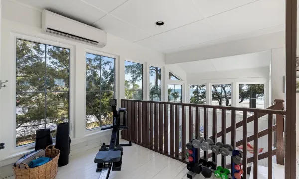 Upstairs boasts a second living area with panoramic view of beach and water. Large smart TV for streaming your favorite apps and Bluetooth speakers for music. Rowing machine and hand weights to keep up your workout routine!