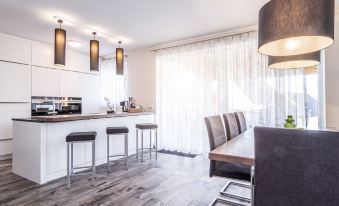 Child friendly, modern resort "Lakeside Village". 45 houses in the resort. 10 apartments in the residence. Outside the resort, in a quiet, sunny position, on the lake. For shared use: property. Private beach, beach volleyball, barbecue, fireplace, children's playground. In the complex: reception, bar, bistro, kiosk, bicycle rental. Available: boat (extra). Bread roll service and breakfast on request. In Winter: please take snow chains. Parking at the house. E-charging station. Bus stop "Frymburk Vřesná, rozcestí" 3.5 km, bathing lake "Lipno". Riding stable 500 m, ice rink 11 km. Nearby attractions: Aquaworld, Marina Lipno, Bobová dráha, Lanový park, Bikepark (Lipno) 15 km, Český Krumlov (UNESCO) 35 km. Well-known ski regions can easily be reached: Frymburk 5 km, Kramolin 15 km, Sternstein 25 km, Hochficht, Sterngartl 40 km. Hiking paths: Stezka korunami stromů (Lipno) 15 km. Please note: baby equipment on request (extra). Fishing [permit required], private mooring. All houses/apartments are individually designed/furnished. "Lakeside Village 28 (+ sauna)", 3-room house 72 m2 on 2 levels. Comfortable and cosy furnishings: living room. Kitchenette (4 hot plates, oven, dishwasher, kettle, microwave, electric coffee machine) with dining table, satellite TV. Shower, sep. WC, Sauna. Floor heating. Upper floor: 1 room with 1 double bed. 1 room with 1 double bed and 1 pull-out bed. Terrace. Terrace furniture. Suitable for families. Maximum 1 pet/ dog allowed.