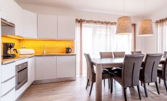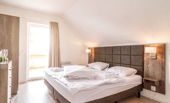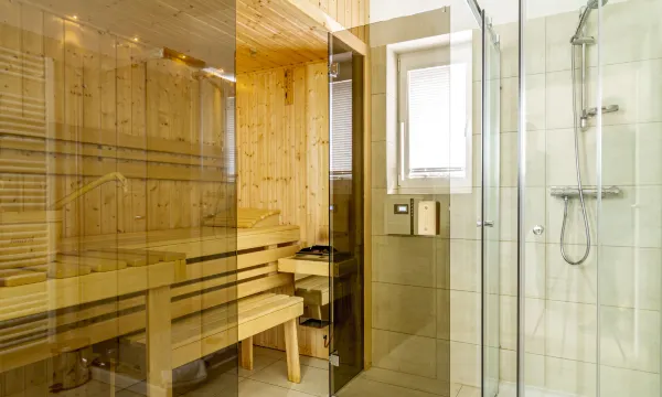 Child friendly, modern resort "Lakeside Village". 45 houses in the resort. 10 apartments in the residence. Outside the resort, in a quiet, sunny position, on the lake. For shared use: property. Private beach, beach volleyball, barbecue, fireplace, children's playground. In the complex: reception, bar, bistro, kiosk, bicycles available bicycle rental. Available: boat (extra). Bread roll service and breakfast on request. In Winter: please take snow chains. Parking at the house. E-charging station. Bus stop "Frymburk Vřesná, rozcestí" 3.5 km, bathing lake "Lipno". Riding stable 500 m, ice rink 11 km. Nearby attractions: Aquaworld, Marina Lipno, Bobová dráha, Lanový park, Bikepark (Lipno) 15 km, Český Krumlov (UNESCO) 35 km. Well-known ski regions can easily be reached: Frymburk 5 km, Kramolin 15 km, Sternstein 25 km, Hochficht, Sterngartl 40 km. Hiking paths: Stezka korunami stromů (Lipno) 15 km. Please note: baby equipment on request (extra). Fishing [permit required], private mooring. All houses/apartments are individually designed/furnished. "Lakeside Village 18 (+ sauna)", 5-room house 100 m2 on 2 levels. Comfortable and cosy furnishings: living room with 1 sofabed. Kitchenette (4 hot plates, oven, dishwasher, kettle, microwave, electric coffee machine) with dining table, satellite TV. Shower/WC, Sauna. Floor heating. Upper floor: 4 rooms, each room with 1 double bed. Shower/WC. Balcony, terrace. Terrace furniture. Partial view of the lake. Facilities: Internet (WiFi, free). Suitable for families. Maximum 1 pet/ dog allowed. Dog (extra) on request.