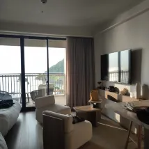 I personally think this is one of the best hotels with the best window views. When I checked in, I was given a first-floor ocean view room in the west building. Opening the window, I faced Palm Beach, a breathtaking view. Make sure to book a west-facing room; the east-facing room is located in the back and doesn't offer a direct ocean view. This apartment-style hotel, nestled on the coastline, is impeccably appointed, both in terms of hardware and software. The kitchen is fully equipped, the room has a bathtub for soaking, and the Baimuda speakers are exceptional. The only minor downsides are a slight damp smell in the bathroom and a few bugs at night. I recommend taking some insect repellent measures at the door.