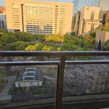 The hotel room has a balcony with a view of the park. It's also conveniently located near the original Ichiran Ramen, which always has a queue, so I went at 8 AM to avoid the crowds. There's also a popular mentaiko restaurant across the street that's always packed with Koreans. The hotel was very quiet at night, ensuring a comfortable sleep. The staff were incredibly friendly and even helped us send a package! I'd definitely stay here again!