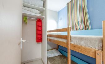 Marines de Gassin 3 km from Saint-Tropez: Residence "Les Marines". 100 m from the sea, 100 m from the beach. For shared use: park, swimming pool (650 m2, seasonal availability: 01.Jun. - 30.Sep.). Children's pool, tennis, table tennis, children's playground. In the complex: lift. Public parking. Shop 200 m, grocery 1 km, supermarket 1 km, restaurant, bar 250 m, bus stop "Marines de Gassin" 450 m, sandy beach "Les Marines de Gassin" 100 m. Sports harbour 200 m, sailing school 150 m, minigolf 1 km, cycle lane 10 km. Nearby attractions: Parc d'attractions Azur Park 1 km, Saint Tropez 3 km, Sainte Maxime 10 km, Cannes 84 km, Nice 110 km. Well-known lakes can easily be reached: Le Lac de Sainte Croix 89 km. Hiking paths: Massif de l'Esterel 50 km. Please note: Additional accommodations can be booked. "Les Marines de Gassin 12", 2-room apartment 32 m2 on 1st floor. Object suitable for 2 adults + 2 children. Beautiful furnishings: living/dining room with 1 double sofabed (160 cm, length 190 cm), TV (flat screen). Exit to the balcony. 1 small children's room with 1 x 2 bunk beds (80 cm, length 190 cm). Kitchenette (4 hot plates, dishwasher, toaster, kettle, microwave, freezer, electric coffee machine, Capsules for coffee machine (Nespresson) extra). Bath/WC. Electric heating. Balcony 10 m2, east facing position. Balcony furniture. Facilities: washing machine. Internet (WiFi, extra). Parking space n 188. Please note: non-smoking house. Smoke alarm. 83065000299V9