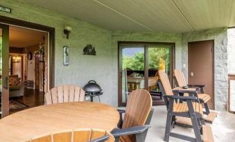 Step outside to the inviting outdoor area of this charming two-bedroom, two-bath condo, where you can soak in the stunning wooded and mountain views. This tranquil space features a spacious table and chairs that comfortably accommodate six, making it perfect for al fresco dining or evening gatherings under the stars. A small electric grill is also available, ideal for enjoying summer barbecues with family and friends. Just a short stroll away, you'll find the clubhouse and a seasonal outdoor pool, providing easy access for recreation and relaxation. Whether you're lounging on the patio with a good book or hosting a weekend barbecue, this outdoor area offers the perfect backdrop for unforgettable moments in nature.