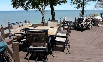 5197 Old Lake Rd ---eastern end of the strip. 2nd floor fully furnished one bedroom loft with private entrance. Bedroom has queen size bed. Huge walk in shower.. Two private lakeside decks above 52' private beach. Grab your coffee and watch the sunrise or a glass of wine and watch the sunset. Build a bonfire and listen to the waves or fish off the break wall. Grill available for cooking out. ***Decks are not attached to loft...at opposite end of home***