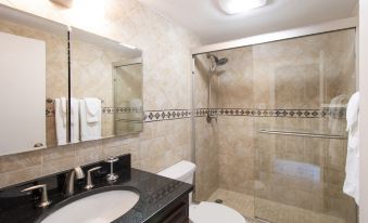 The unit is well equipped with everything you need for a comfortable stay. The master bedroom has a comfy king size bed, ceiling fan, dresser and patio to enjoy your morning coffee along with the natural lighting and a fresh cross breeze. The open loft room over looks the living room and includes 2 single beds and dresser, great for kids. The kitchen has a breakfast bar with stools inviting conversation as meals are prepared or just relaxing after a long day at the beach. It is fully equipped to make meal preparation easy with stainless steel appliances, dishwasher, a coffee maker, toaster, and blender. There is also a covered front balcony that includes a dining table to enjoy your meals or morning coffee outside and enjoy the warm Caribbean weather. The bathroom has a large walk-in shower with sliding glass doors (no bathtub). There are also smart tv's available for you to sign into your favorite streaming service for entertainment. Guest Access There is free parking available on site. Island Pine Villas shares a large complimentary parking lot next door. The complex also offers a large swimming pool (plus loungers on the sundeck), a BBQ, and on-site coin operated laundry facilities. Located within walking distance to several shops, restaurants and bars, you can enjoy all the fun daytime action and nightlife. Interaction At Beach Living, customer service is very important to us and we will be happy to answer any of your questions or concerns. Also, at the property you will be greeted in person by a friendly Beach Living agent to welcome you at check-in! Other thing to note: Owen Roberts International Airport is 3.1 miles away.