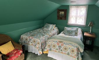 An upstairs bedroom allows for privacy, where a king bed can be converted into two twins . A separate bedroom on the main floor has one queen bed.