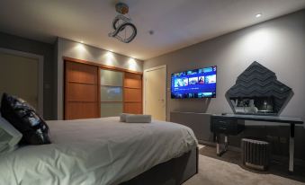 Our luxury riverside penthouse in Glasgow, offering stunning River Clyde views. This exclusive space features a private bar, ideal for unwinding after exploring the city. Enjoy modern amenities, free Wi-Fi, and spacious living areas, perfect for couples, solo travellers, and business professionals. Located near restaurants, shopping, and public transport, our penthouse combines the serenity of riverfront living with city convenience. Book now for an unforgettable Glasgow experience
