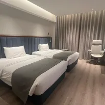 The hotel itself is modern and well-kept, with a clean and stylish design. My room was spacious and comfortable, featuring contemporary furnishings and all the necessary amenities for a restful stay. The bed was particularly comfortable, and the room's soundproofing ensured a peaceful night's sleep despite the proximity to the airport.