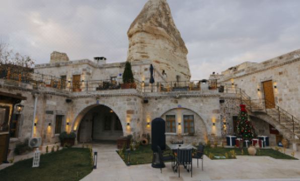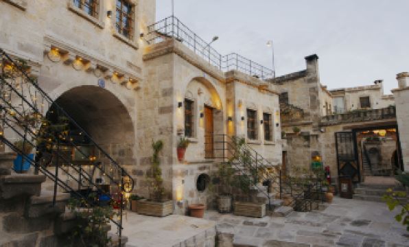 Can I just say this hotel is an oasis in Göreme?! From the moment you walk in, the pool is the first thing you see – and it's absolutely stunning for photos! I booked this hotel because I loved it so much, even though I couldn't get a consecutive stay. Trying out two different room types was also a great experience! The rooms have a very vintage design, and the suites come with a Jacuzzi tub – just remember to bring your own disposable tub liner if you want a soak! My absolute favorite part, though, was the view of the pool. It's beautiful from every angle, at any time of day. It looks even more magical at night when the lights come on. Sip on a spritz and then drift off to sleep! Besides the hot air balloons, finding this hidden gem of a hotel was the biggest highlight of my trip to Göreme! Oh, and hotels here usually have a custom of taking in or keeping a stray dog. This one has a big black German Shepherd – don't let his size fool you, he's very gentle, so no need to worry too much.