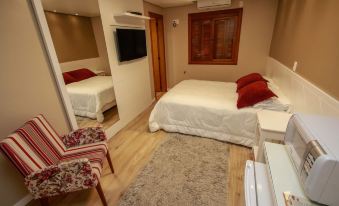Ficamos no quarto com a sacada. Quarto com bom tamanho, cama confortável, boa quantidade de cobertas, ar condicionado na sala e no quarto, chuveiro quente e forte. Destaque muuuito positivo para o café da manhã. Cada dia com diferentes bolos e doces. Café da manhã farto e muito gostoso! Com certeza retornaremos à pousada em novas visitas a Gramado. Parabéns aos donos da pousada! Tudo muito lindinho!
