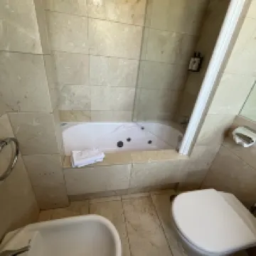 Nice bathtub and excellent location. Elevator was under repair but they offered to bring up my bags and it was only two floors so no problem