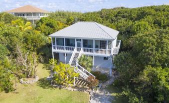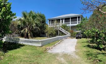 The Hidden Turtle Cottage on Green Turtle Cay is nestled into a hillside steps away from Coco Bay and the Sea of Abaco. This secluded, comfortable house has a large fenced in yard which is nearly surrounded by a canopy of native trees. It is located within a two minute walk to the beaches of the Atlantic Ocean and the Sea of Abaco.