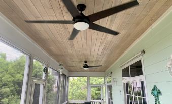 All of the rooms of the house have large sliding doors that can be opened to enjoy the tropical breezes and sounds of the island. No need to worry about bugs either! The doors open onto a fully screened wrap around porch. New "solar shade" screens help to reduce the heat of the sun while maintaining views and the 64” fans will keep the breeze flowing.