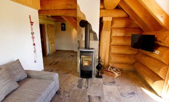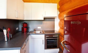 Sauna is designed for up to 10 people. Price € 25.00 extra per person for 4 hours, including a bathrobe, sauna towel, beach towel and flip-flops on loan. Comfortable timber house, surrounded by trees and meadows. In the district of Schönbronn 6 km from the centre of Grosserlach, in a quiet position, 200 m from the edge of the forest, 4 km from the lake. In the complex: sauna (extra). Washing machine (extra), tumble dryer (for shared use, extra). Parking at the house. Grocery 6 km, supermarket 10 km, restaurant 2 km, bakery 6 km, bus stop 500 m, railway station "Sulzbach an der Murr" 7 km, outdoor swimming pool 10 km, bathing lake "Starkholzbachersee" 4 km. Golf course (18 hole) 2 km, tennis 6 km, ski lift 6 km, cross country ski track 200 m, children's playground 1 km. Nearby attractions: Limesturm 2 km, Würth-Museum 20 km, Altstadt Schwäbisch-Hall 25 km. Hiking paths: Schwäbisch-Fränkischer Wald, Rottal, Fischbachtal. "Ahorn", 3-room apartment 68 m2 on 2 levels on 2nd floor. Stylish and wooden furniture furnishings: living/dining room with Scandinavian wood stove and satellite TV (flat screen). Exit to the balcony. 1 room with 1 bed (90 cm, length 200 cm). Open kitchen (oven, dishwasher, 4 ceramic glass hob hotplates, electric coffee machine). Shower/WC. Top floor: 1 double bedroom with sloping ceilings. Heating. Large balcony. Balcony furniture. Very beautiful view of the countryside. Facilities: baby cot (extra), logs (free). Internet (WiFi, free). Please note: non-smokers only. Smoke alarm.