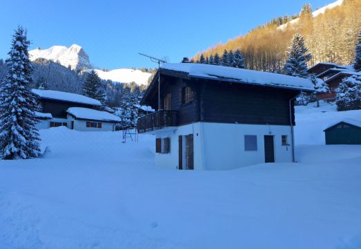 Rustic chalet "Castor", 2 storeys, detached, surrounded by meadows. In the resort, in a quiet position, 18 km from the lake. Private: large garden (not fenced), parking (for 2 cars) at the house. Shop 10 km, grocery 11 km, supermarket 10 km, shopping centre 10 km, restaurant 550 m, bar 10 km, bus stop "Moléson-sur-Gruyères" 550 m, railway station "Bulle" 1.3 km, thermal baths "Les Bains de Gruyère" 16 km. Walking paths from the house 1 m, ski lift 300 m, chair lift, slopes, sled run. Nearby attractions: Gruyère 6 km, Bulle 10 km, Maison de Cailler-Le Chocolat Suisse 10 km, Fribourg 20 km, Gstaad 43 km, Montreux 46 km. Well-known ski regions can easily be reached: Moleson. Well-known lakes can easily be reached: Lac de Gruyère 18 km, Lac Léman 46 km. Hiking paths: Moleson. Please note: car recommended. "Chalet Castor", 4-room chalet 80 m2 on 2 levels. Tasteful and wooden furniture furnishings: living/dining room with Scandinavian wood stove, dining table and TV. Exit to the patio. Open kitchen (oven, dishwasher, 4 ceramic glass hob hotplates, fondue Set (cheese)) with bar. Upper floor: 1 room with 1 double bed. Exit to the balcony. 2 rooms, each room with 1 x 2 bunk beds. Bath/WC. Balcony, large patio. Barbecue. Very beautiful view of the mountains and the countryside. Facilities: baby cot for up to 3 year olds (extra). Internet (WiFi, free). Please note: non-smokers only. Maximum 2 pets/ dogs allowed.