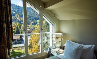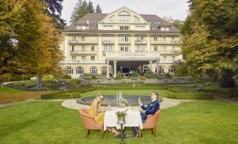 Le Grand Bellevue re-launched in January 2014 after a year-long renovation by dynamic young owners- Daniel and Davia Koetser. In the heart of Gstaad village- the hotel was originally built in 1912 as a Cure House and Spa and continues to hold the title of the oldest palace hotel in Gstaad. Bold colours- eye-catching prints and elegant furniture make up the interiors. The hotel s signature restaurant LEONARD s offers exceptional fine dining cuisine whilst the more intimate Le Petit Chalet serves up a menu of hearty Swiss dishes and its art deco bar and cocktail lounge bouquet have become Gstaad s most sought after night spots. Other features include a Cigar Lounge- Private Cinema- Club House and a 3000sqm Alpine spa. Le Grand Bellevue is a Small Luxury Hotels of the World property.
