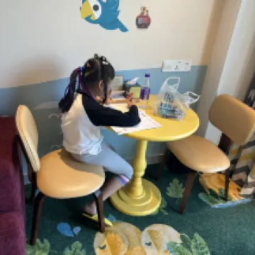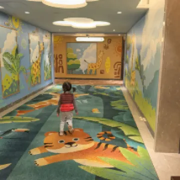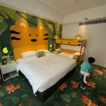 The hotel is right next to the North Gate of the zoo and offers a shuttle service and luggage storage. Check-in is at 3 PM, and check-out is by 12 PM. The staff are incredibly attentive, and it's excellent value for money! There's a great selection of family-friendly themed rooms; the elephant-themed floor has an amazing immersive atmosphere. The free children's play area on the first floor is perfect for toddlers, and the kids absolutely loved the driving school on the fifth floor. There are also fun interactions with the Kaka Tiger mascot in the lobby daily. The hotel has a takeaway locker system, making it super convenient to pick up food just a few steps from the lobby. The kids had a fantastic time and loved it!