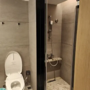 The bathroom door was a bit sticky and wouldn't lock properly. Other facilities were good though, and breakfast and supper were a nice touch! 👍 It was also convenient to get around by taxi, and there were shared bikes nearby (though a bit hard to ride). It's very close to Chimelong, about a 15-minute bike ride or less than 10 minutes by taxi.