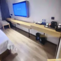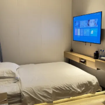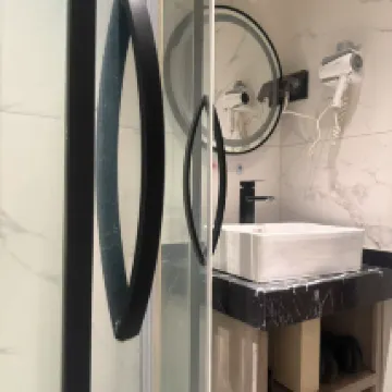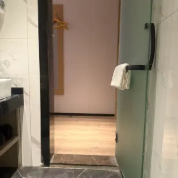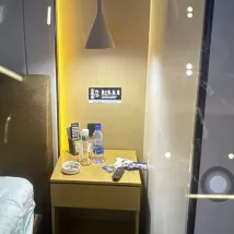 Stayed at Meiye for two nights. The bathroom is a wet and dry separation, the bed was comfortable, the air conditioning was cool, and the hallway was spacious. They offer free milk tea and coffee. The front desk staff was excellent, solving issues very quickly.