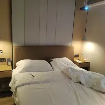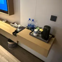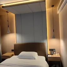 The hotel's location is great. We had a room with a 1.8-meter king-sized bed, perfect for movie nights. The facilities are modern, and the ambiance is really nice. The front desk staff were lovely, and they even deliver takeout directly to your room. It was genuinely a fantastic stay.