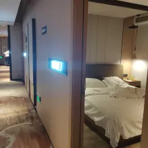 There are plenty of great food options near the hotel, and it's very close to Canton Tower. The guest room corridor on the third floor felt quite grand and high-end. The lady at the front desk was incredibly helpful, promptly resolving any issues. Her pleasant demeanor and kind words really made me feel valued, definitely deserving a huge thumbs-up! The bathroom had excellent wet and dry separation, and the bed was soft and comfortable.