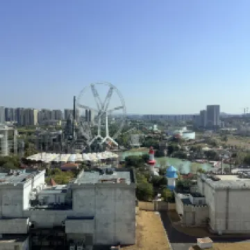 Our room was a real highlight. It was surprisingly huge, spotlessly clean, and flooded with amazing sunlight because we had a corner unit. The ventilation was great, and the view of the theme park below was awesome to wake up to. The entertainment setup was next level. They have a high-quality projector with access to thousands of movies, and even a free-to-use PS4. It was the perfect way to wind down in the evenings.