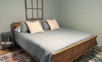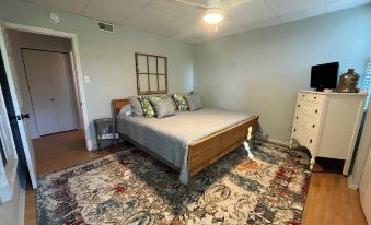 Second floor has two bedrooms and full remodeled bathroom with tub. The large master bedroom has 2 queen beds, and the guest bedroom has a king bed with both bedrooms having a dresser, closet with hangers, full size mirror and television with Roku.