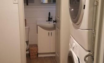First floor has updated kitchen, remodeled half bathroom, stackable washer/dryer, combined living room/dining room with new sectional and smart Roku television.